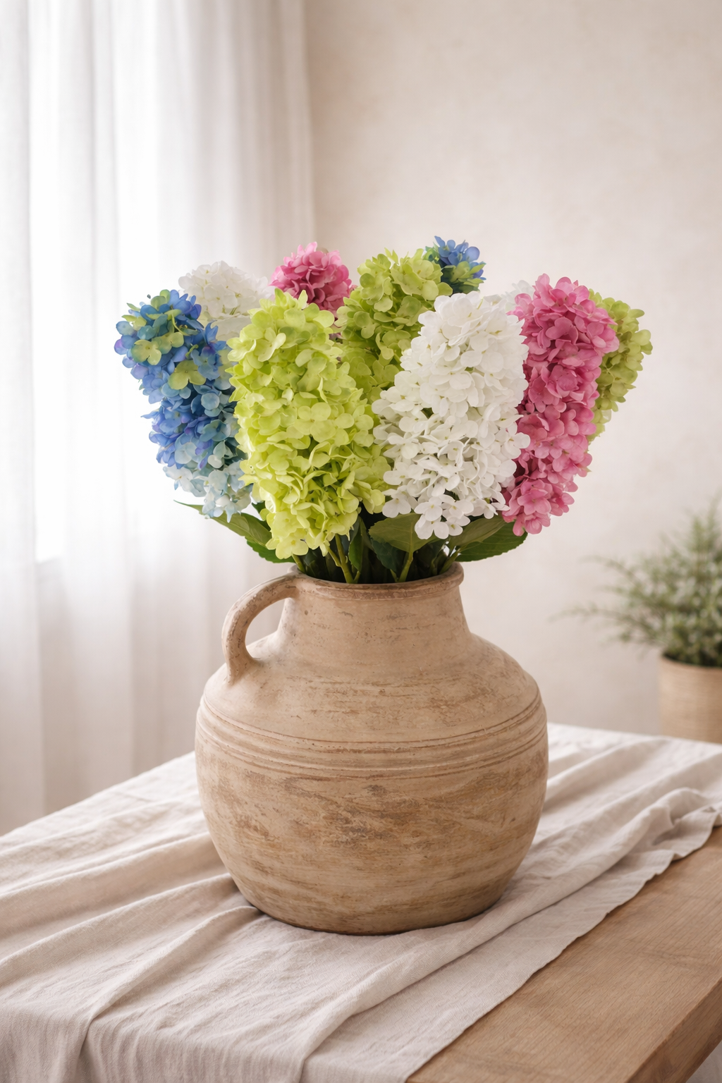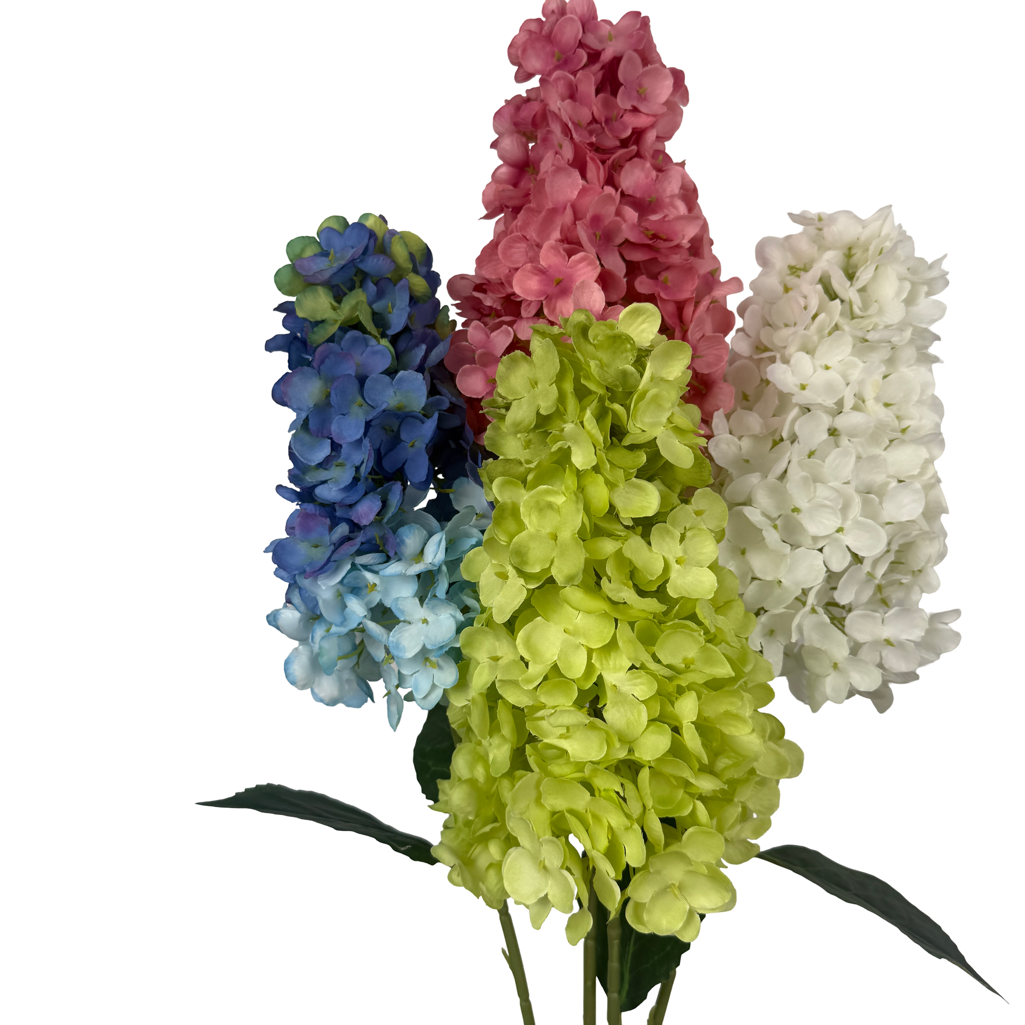 The cone hydrangea shape adds vertical movement, making it especially useful in taller arrangements where height is required without adding heavy structure.