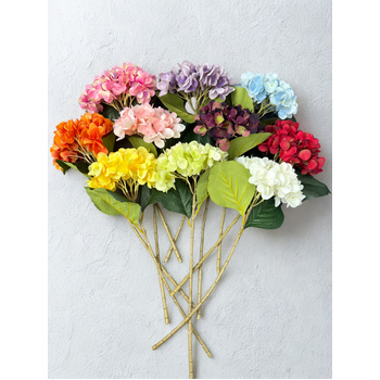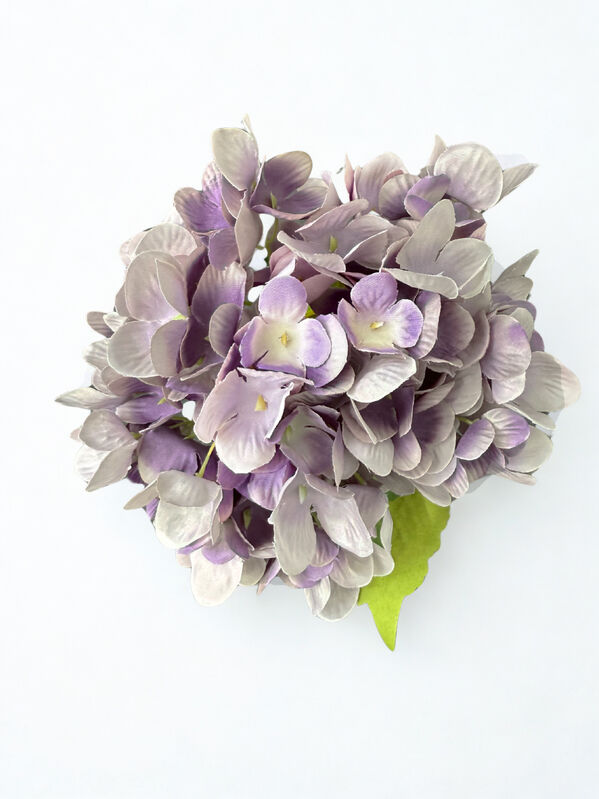 This artificial single-head hydrangea stem is perfect for adding volume and colour to floral arrangements without the maintenance of fresh flowers. Each stem features a single large hydrangea head and two lifelike leaves, making it suitable for bouquets, centrepieces, and venue styling.