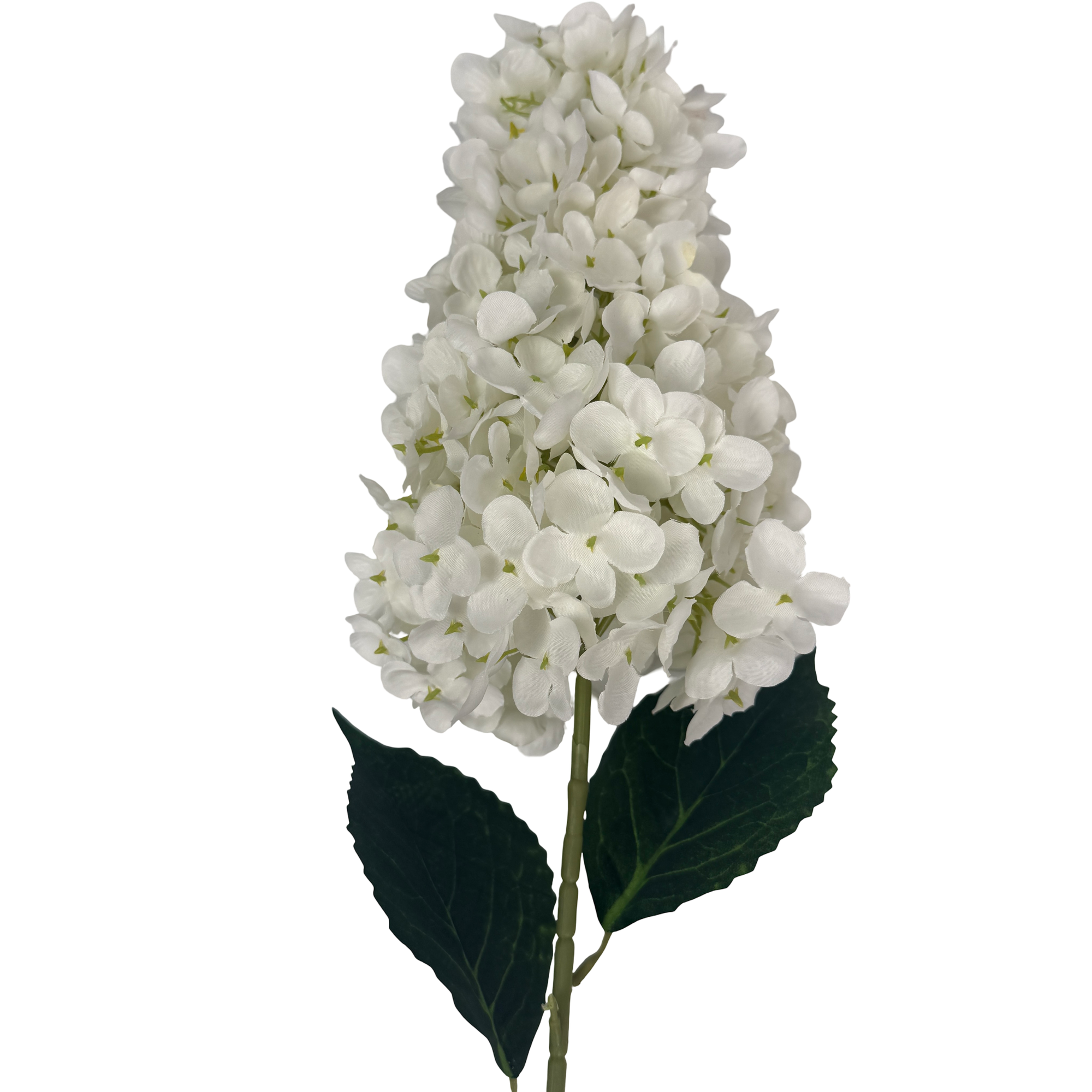 This White Cone Hydrangea Stem 88cm is a tall artificial flower designed for large arrangements, ceremony styling, and statement displays. The elongated cone-shaped bloom creates height and structure, making it ideal for filling space in wedding and event designs.