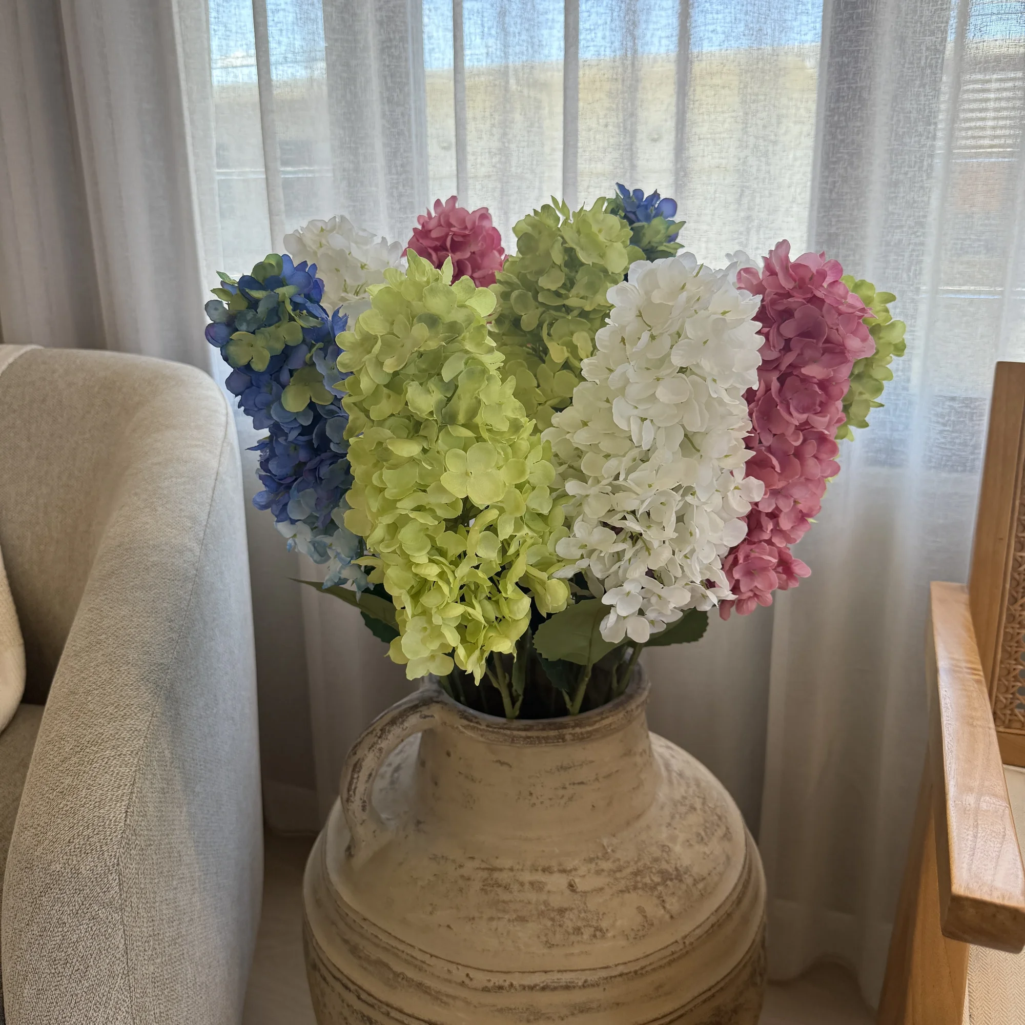 Hydrangeas are widely used by florists because they provide volume quickly. One stem can visually fill the space of several smaller flowers, helping create full, balanced arrangements without overcrowding.