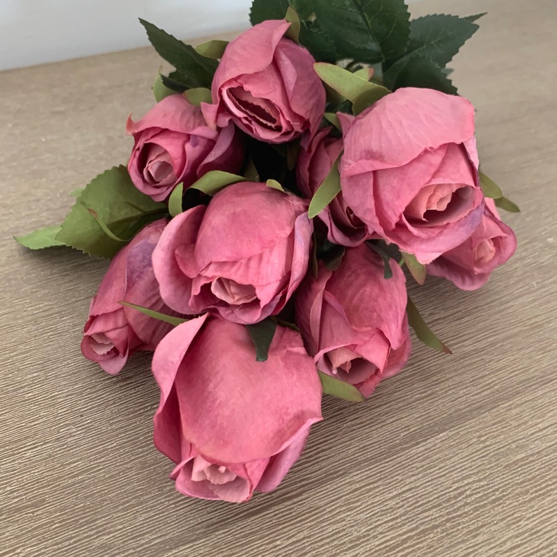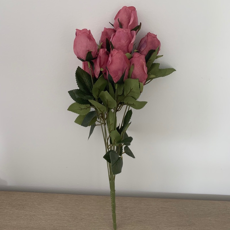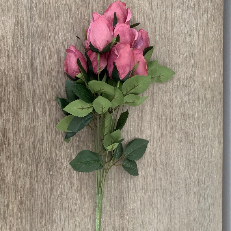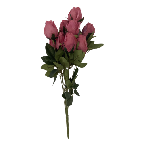 45cm - 9 Head Rose Bud Bush - Dark Mauve