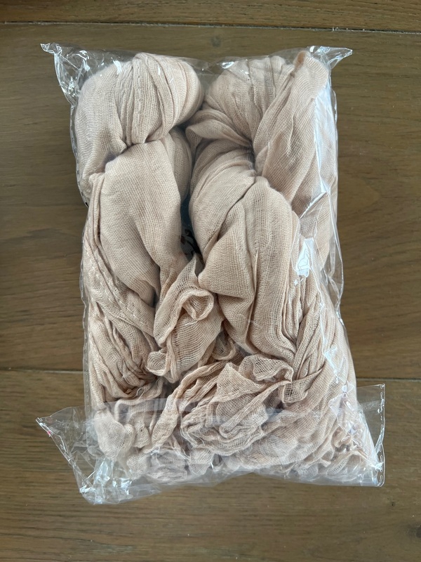 Please be advised that due to the natural dyeing process, there are variations (some slight some large) in colour between different batches of our cheesecloth products. We recommend ordering the full quantity you need in one transaction to ensure colour consistency throughout your décor.
