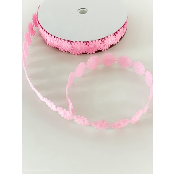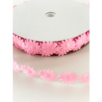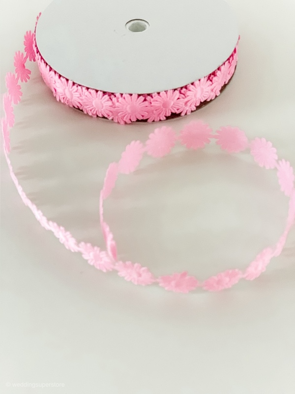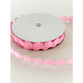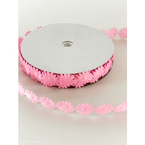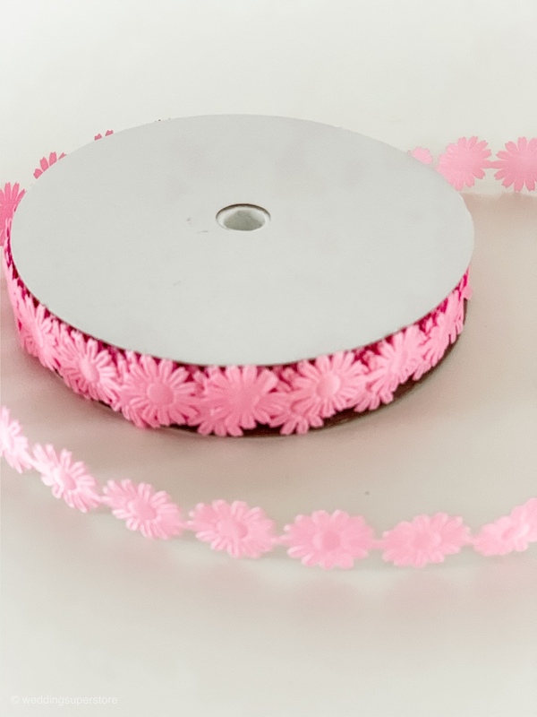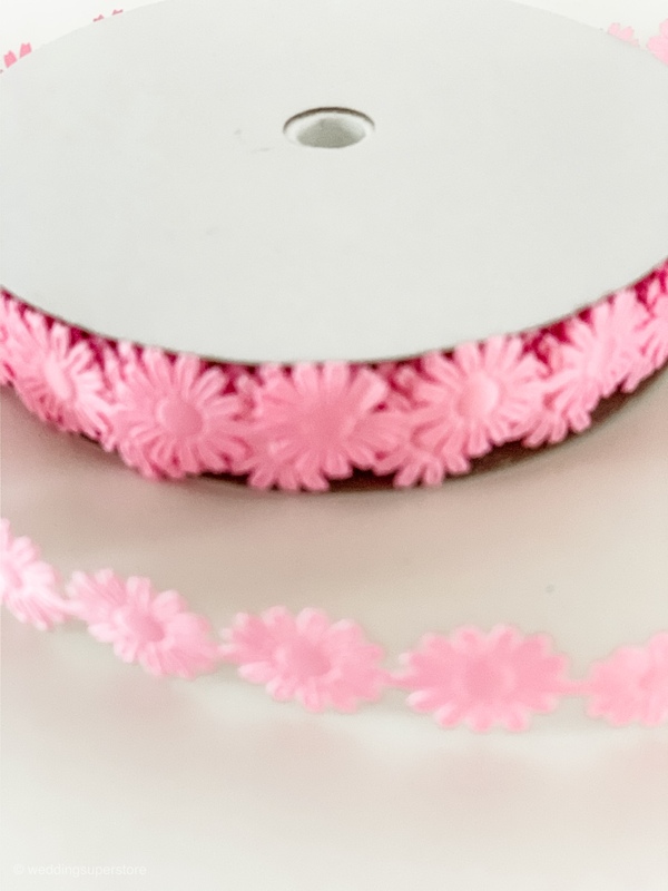 1.8cm Pink Daisy Flower Polyester Embossed Ribbon 18m