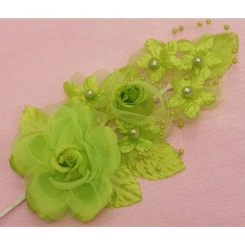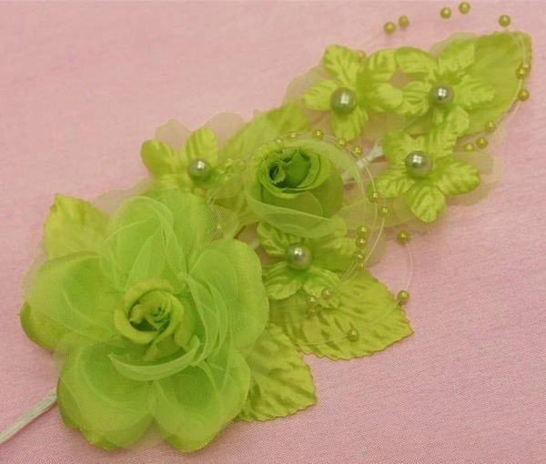 The main flower is 2" diameter, with multiple faux pearl sprays throughout.