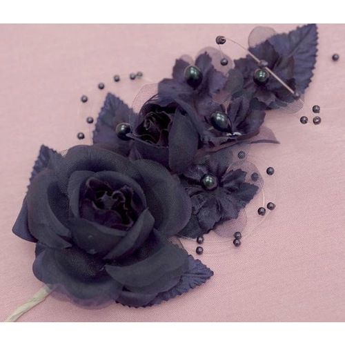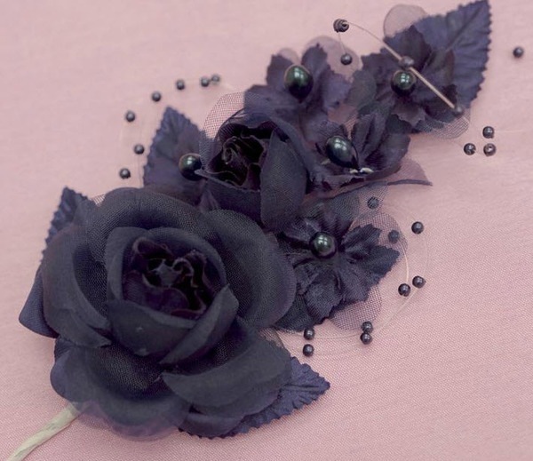 The main flower is 2" diameter, with multiple faux pearl sprays throughout.