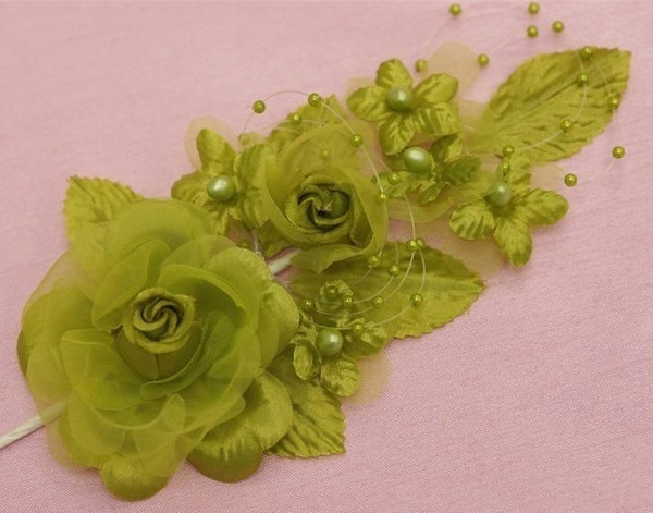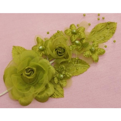 The main flower is 2" diameter, with multiple faux pearl sprays throughout.
