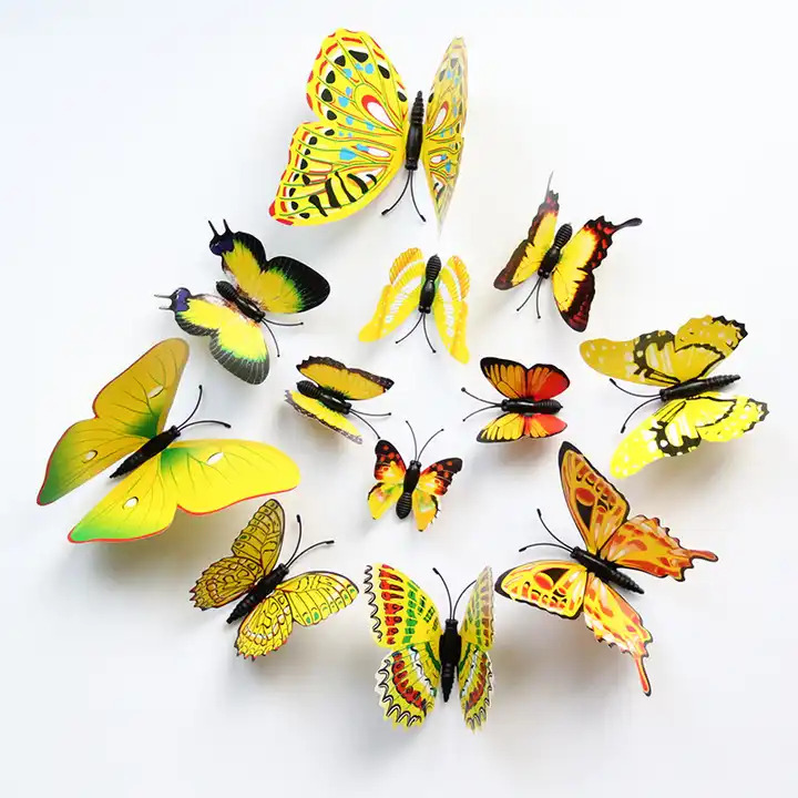 12pc - 3d Butterflies Yellow - Wall Stickers/Decorations
