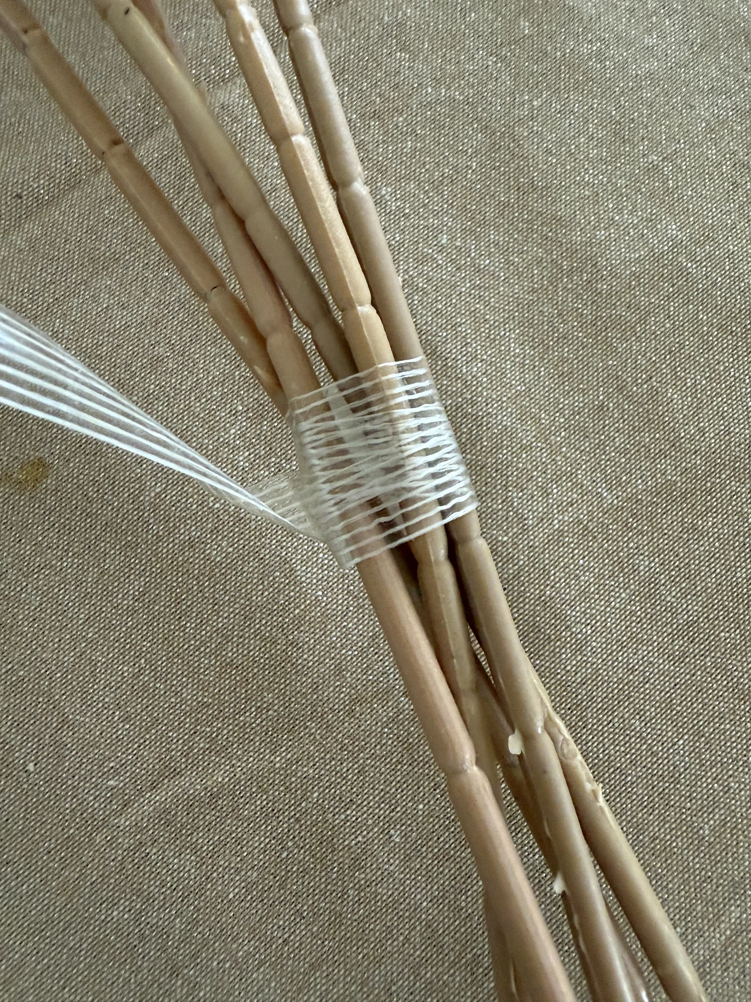 The transparent finish keeps bouquet bindings neat and hidden, making it ideal for wedding floristry where clean presentation matters. The tape stretches slightly as it is wrapped, allowing it to grip tightly around stems, artificial flowers, and support structures.