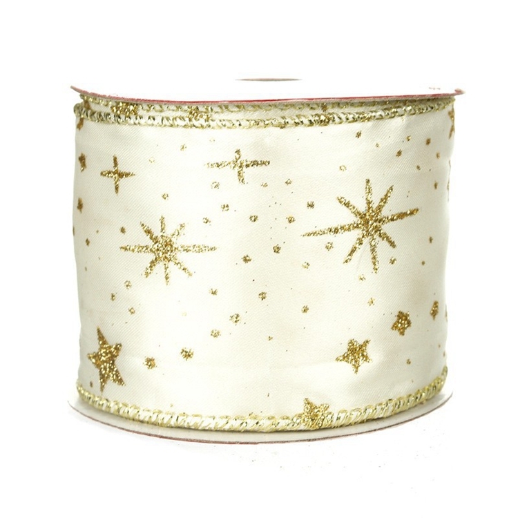 6.3cm x 9m Gold Star Christmas Ribbon - Wired Edge