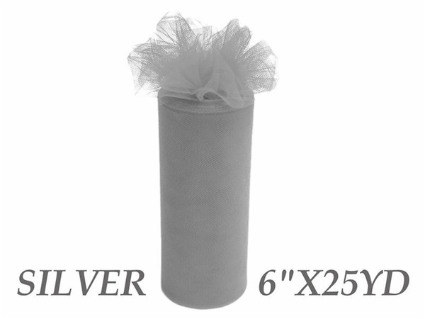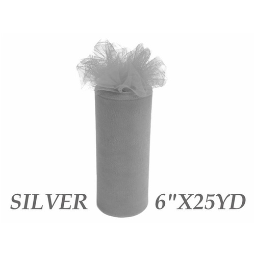 6inch x 25yd Tulle Roll - Silver