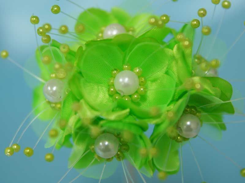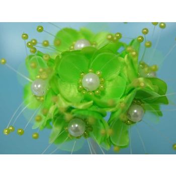 These are pearled flowers with a stunning 1/4" faux pearl in the centre, surrounded by 12 seed beads spraying out. Tied on a 4" wire stem.