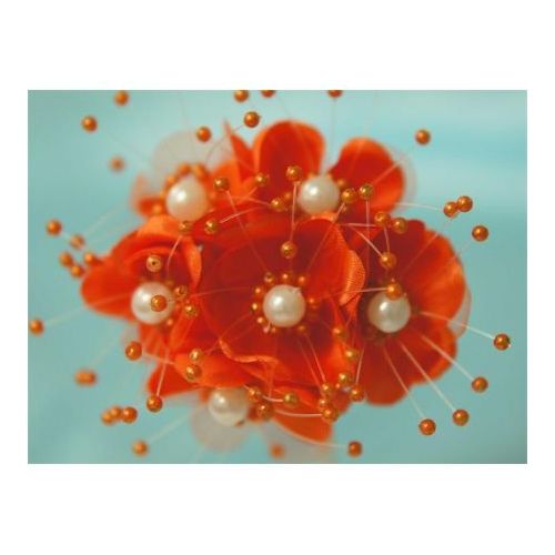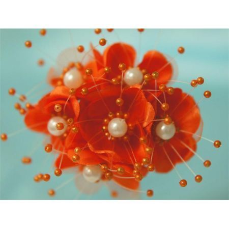 Faux Pearl Flower - Orange - 72/pk