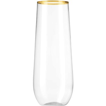 Cheers to effortless wedding toasts! Our disposable stemless champagne flutes combine sophisticated style with unbeatable convenience. Their elegant gold rims add a touch of luxury, while the sturdy plastic design lets you celebrate without worry.