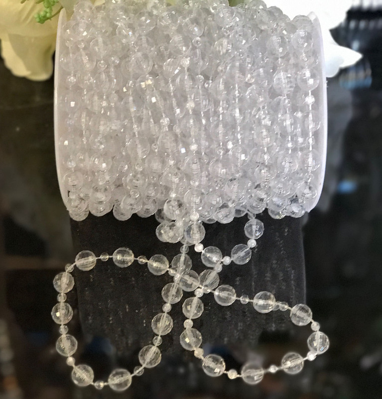 10mm/4mm Clear Mixed Pearl String Beads - 15m Chain/Garland