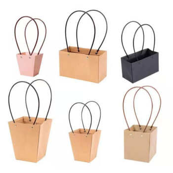 Product: Craft Card Flower bag with Platic Handle, gusseted