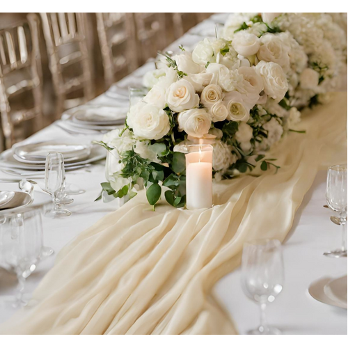 Extra Long 4m Ivory Cheesecloth Table Runner 90x400cm