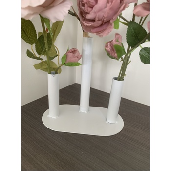 Embrace the simplicity with our Budget Three-Tube Metal Vase in White. This budget-friendly vase features three distinct tubes, perfect for showcasing individual stems or creating airy, minimalist floral arrangements.