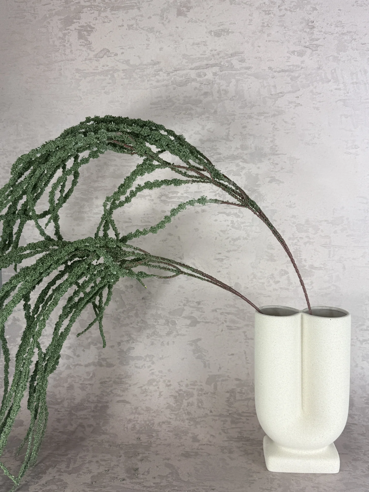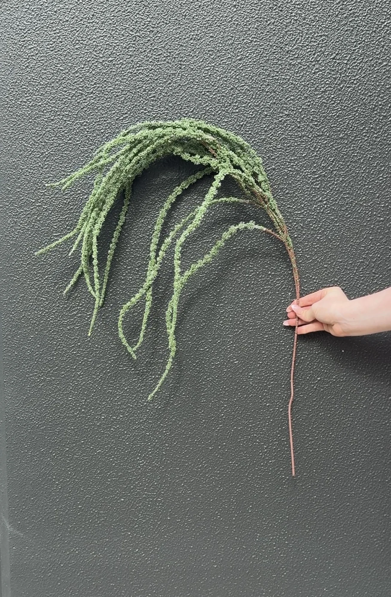 Add a dramatic touch to your floral displays with our 100cm Sage Green Cascading Artificial Amaranthus. With 30cm of bare, bendable stem followed by cascading branches, this piece is ideal for creating visual depth in large pedestal or arch arrangements. The branches feature polystyrene balls to replicate the natural Amaranthus texture. Please note, some polystyrene may come loose upon opening, so we recommend opening outdoors initially. Perfect for weddings or home decor, this filler adds dimension to any arrangement.