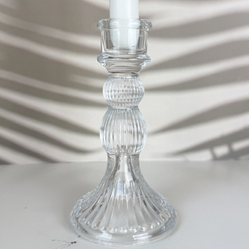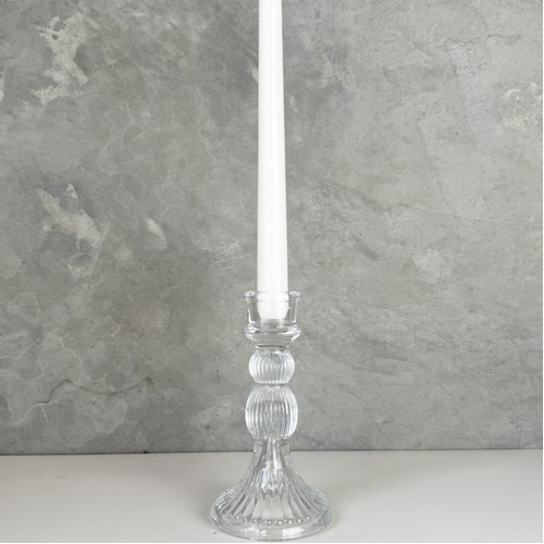 Glass Heavy Duty Round Base Taper Candle Holder – 15cm Tall