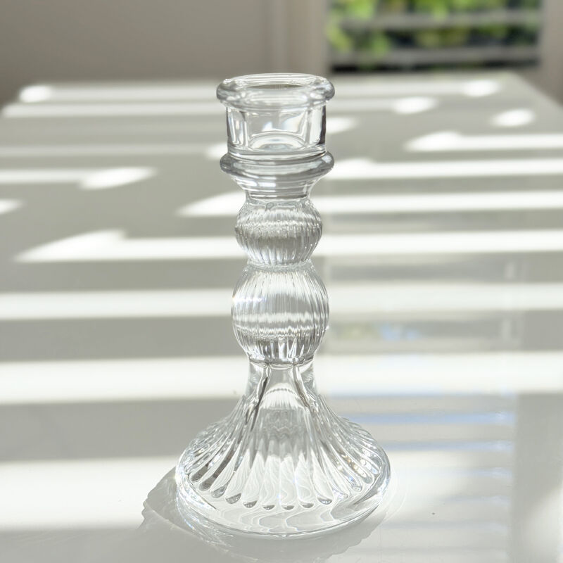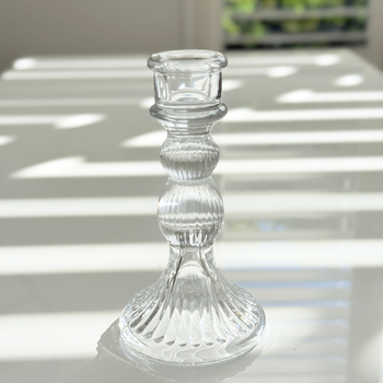 15cm Heavy Duty Glass Taper Candle Holder – Round Base
