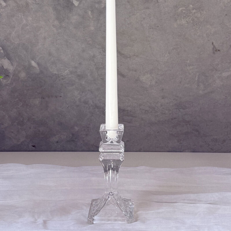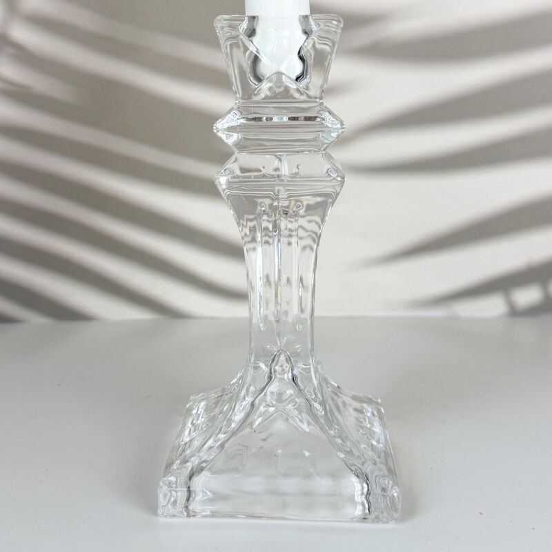 Glass Heavy Duty Square Base Taper Candle Holder – 15cm Tall