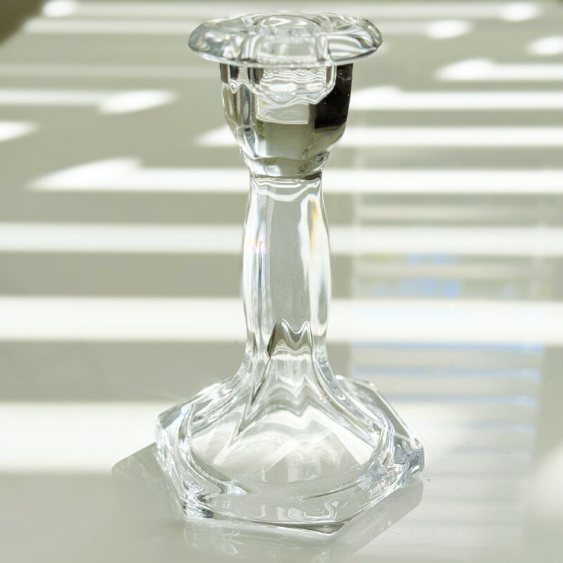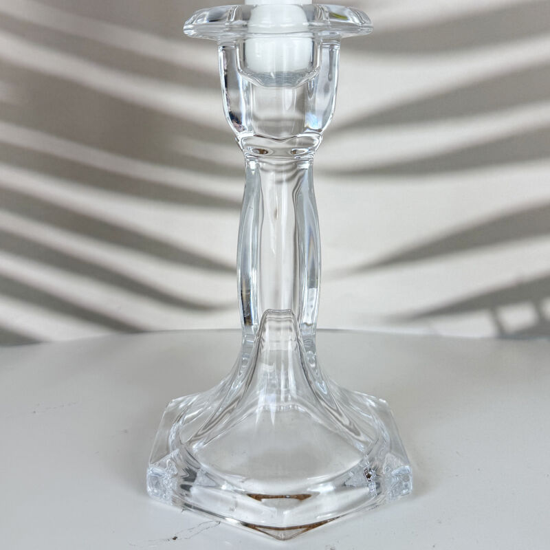 15cm heavy Duty Glass Taper Candle Holder – Hexagonal Base