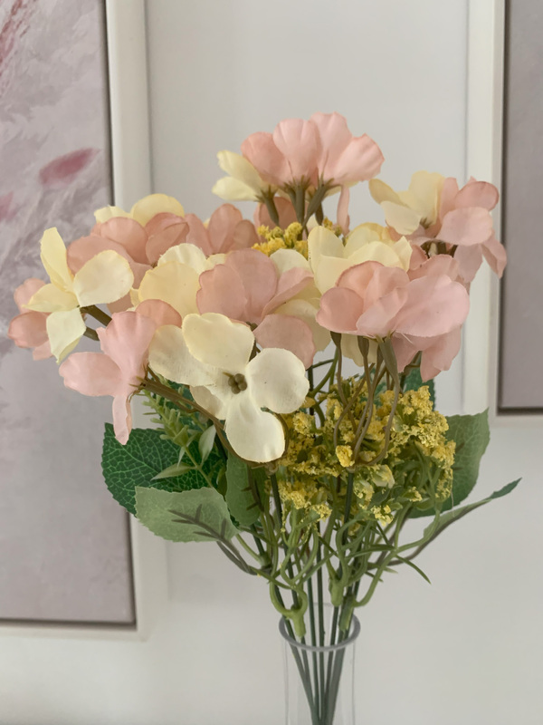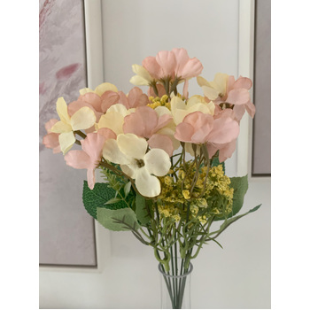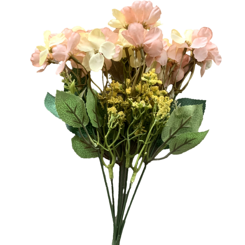 34cm Hydrangea Filler Bunch - Peach/Yellow