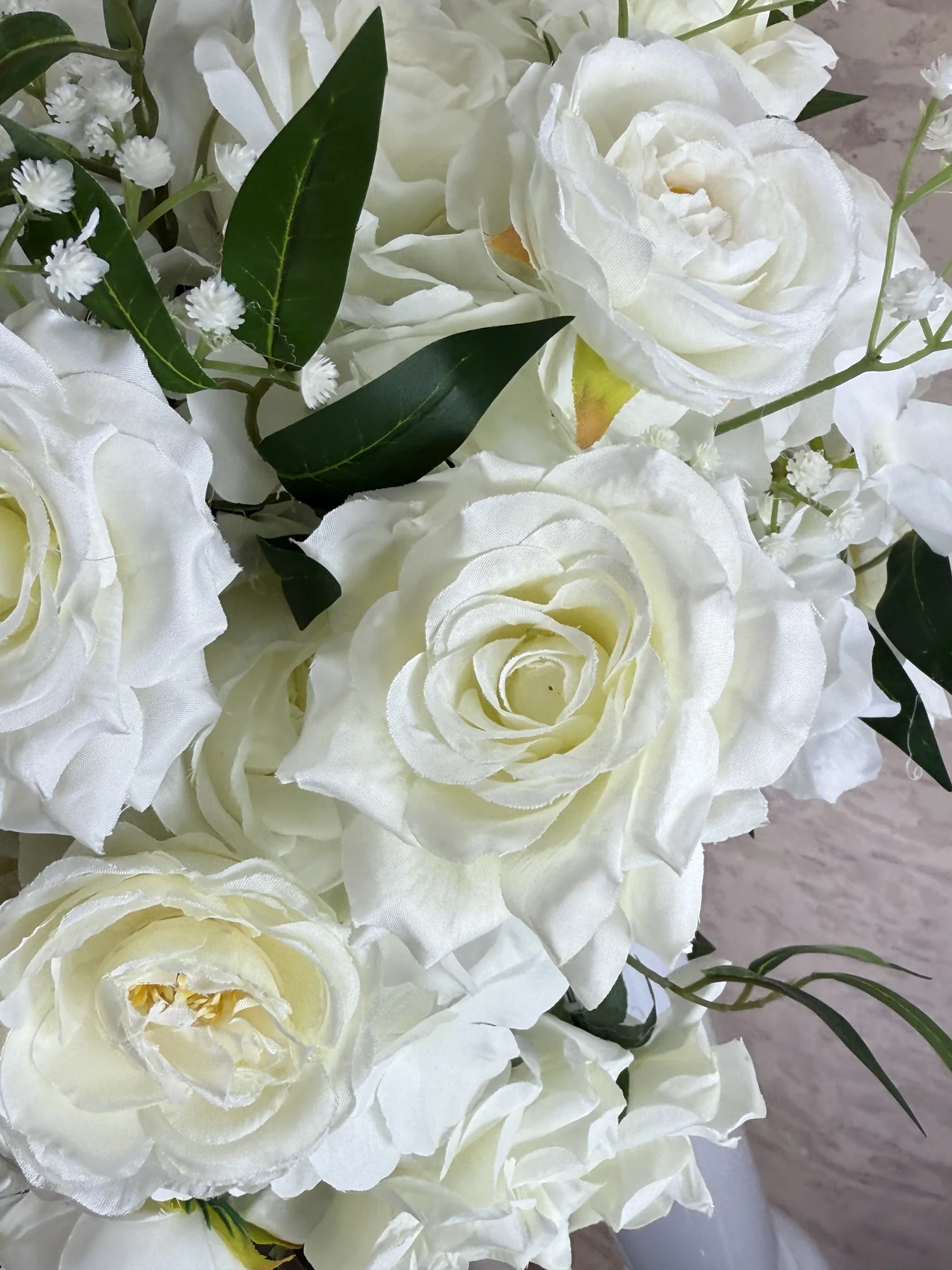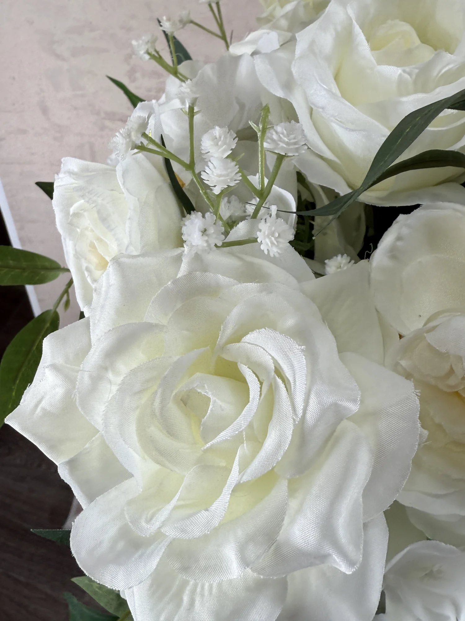 High-Quality Materials: Fabric roses paired with plastic baby’s breath for a realistic look.