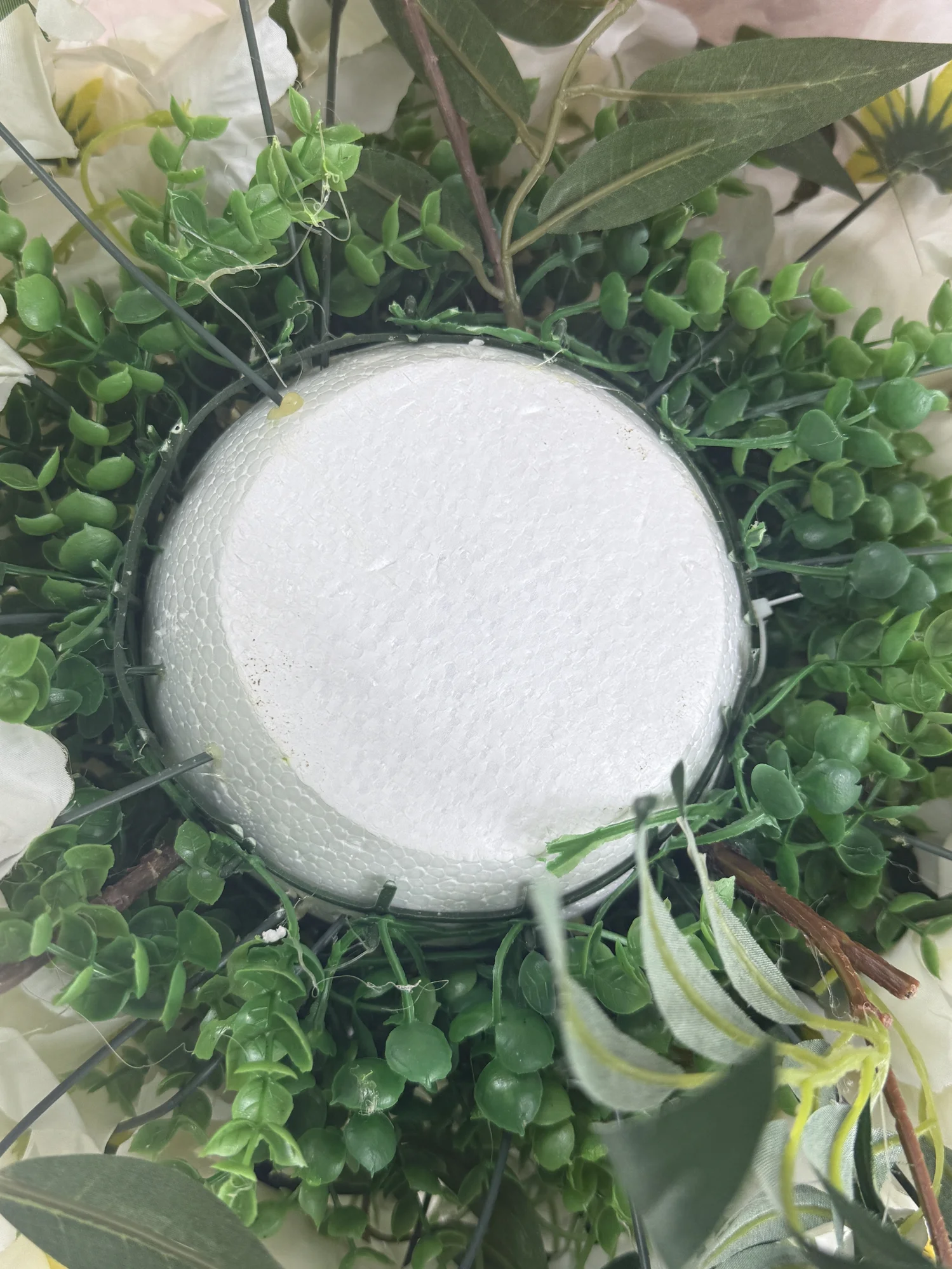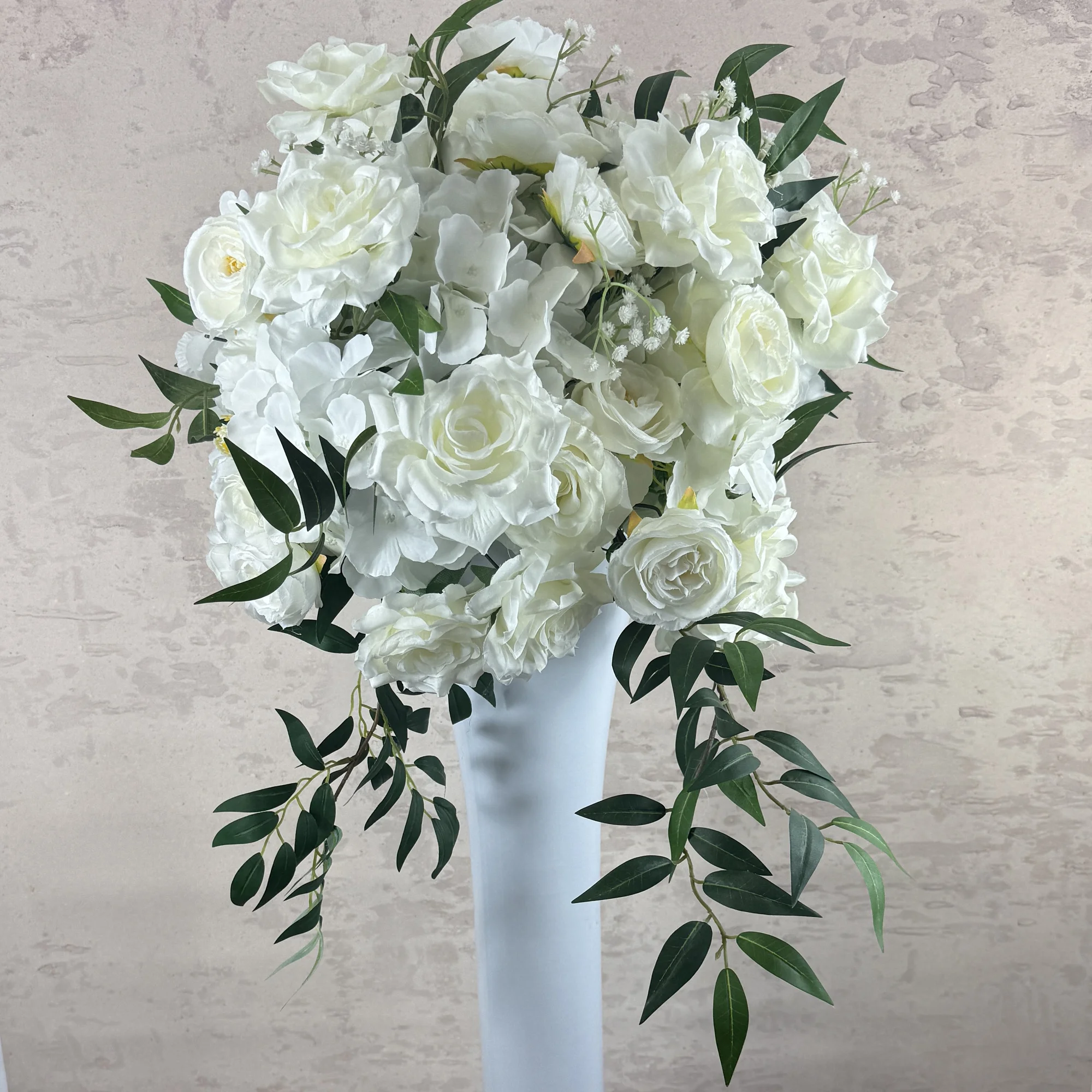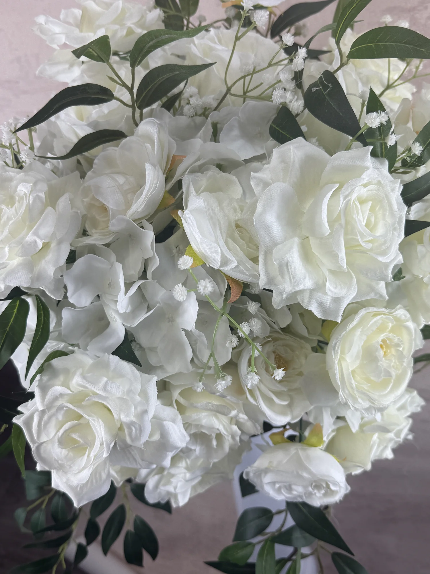 45cm - Rose, Hydrangea & Peony Flower Ball Arrangement - White/Cream