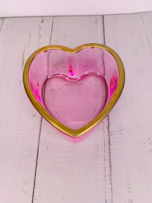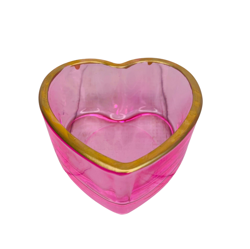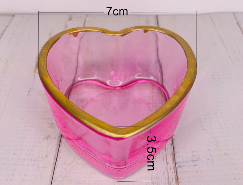 7cm Heart Shaped Tea Light Holder - Pink/Gold