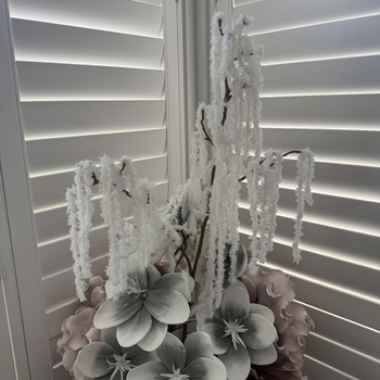With its elegant drape and snowy white hue, this amaranthus stem is perfect for arches, table centrepieces, and winter-themed events. The stem features two flowing branches, making it ideal for creating lush, cascading arrangements that add drama and sophistication to any setting.