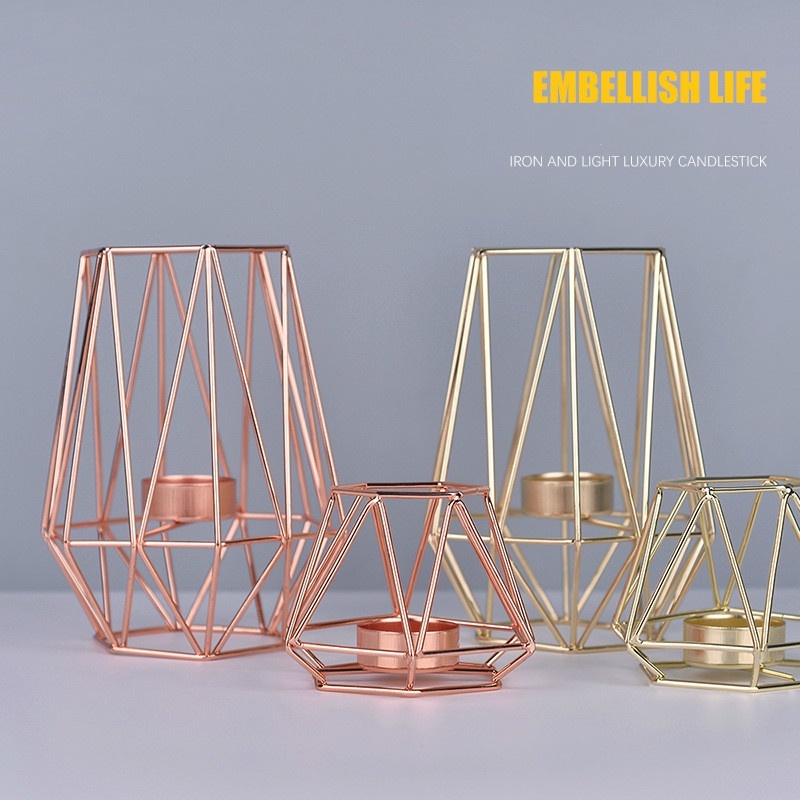 8cm Rose Gold Geometric Tea Light/Votive Candle Holder