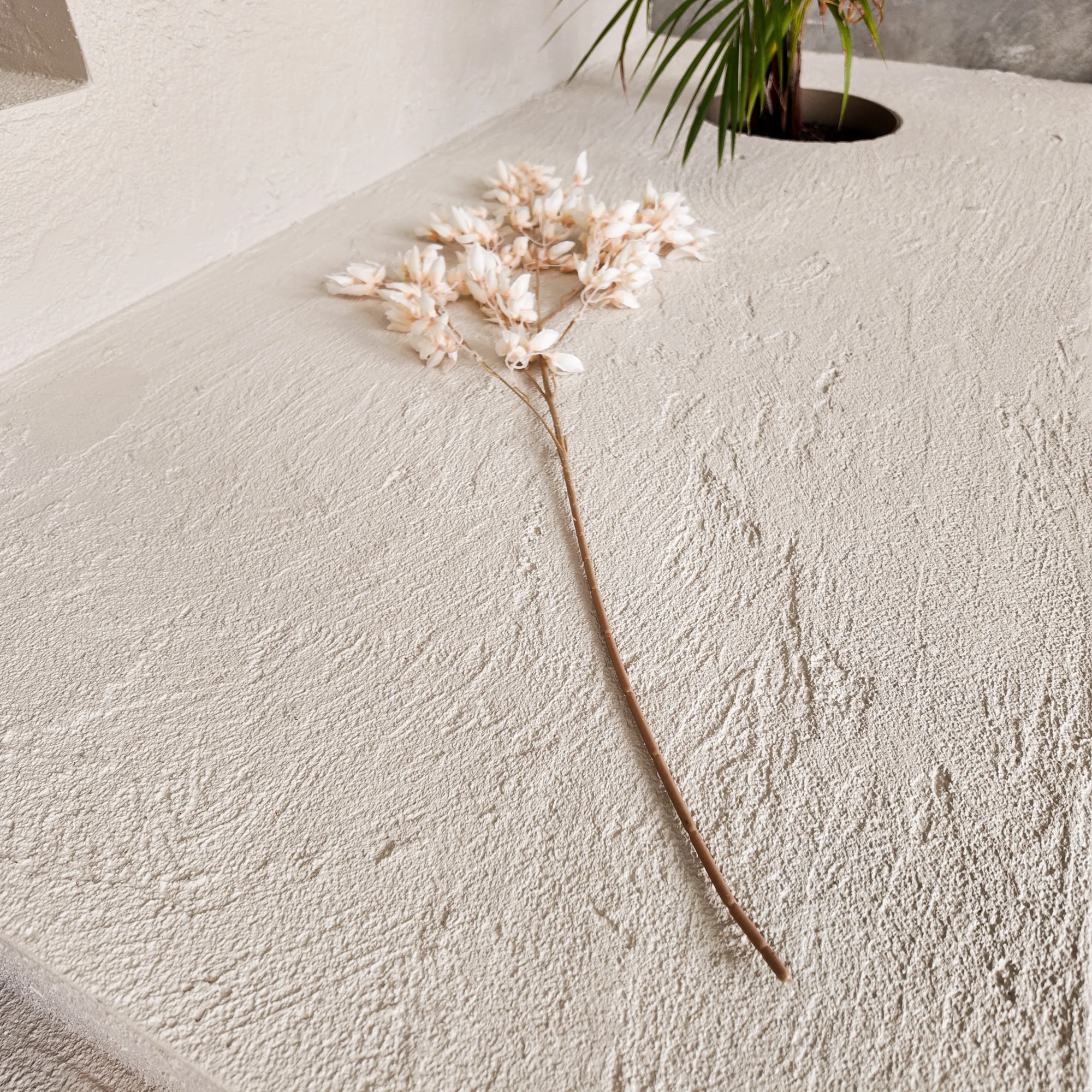 Bring soft colour and natural movement to your styling with this Ivory Artificial Blossom Branch. Designed with delicate fabric blossoms and a flexible wired stem, this branch is ideal for wedding installations, event styling, floral arrangements, and home décor.