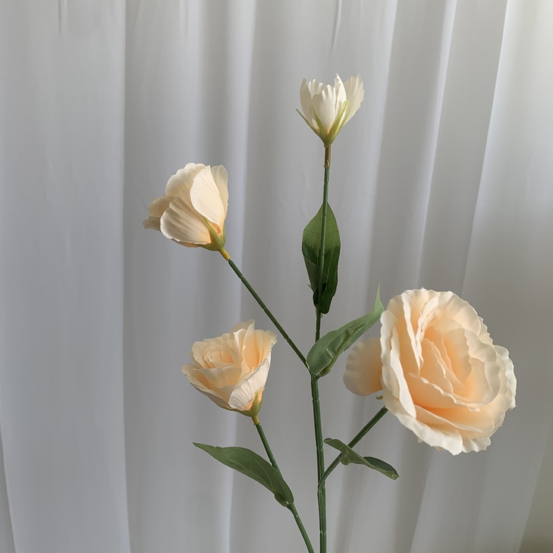 - Soft Peach Blooms: Four peach-colored flowers, including 3 open blooms and 1 bud, mimic the gentle beauty of lisianthus.