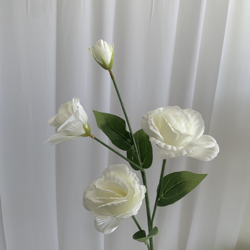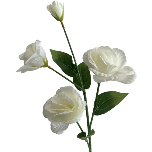 Add a touch of timeless beauty to your wedding, event, or home décor with our elegant 70cm Artificial Lisianthus Stem in white. Featuring 3 open blooms with a diameter of 7cm each and a delicate bud, this stem captures the grace and simplicity of real lisianthus flowers.