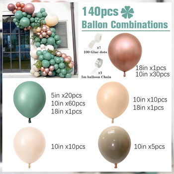 Champ/Apricot/Rose Gold/Euclayptus Theme 140pcs Balloon Garland Decorating Kit