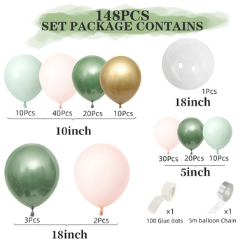 Eucalyptus/Gold/Apricot Theme 148 pcs Balloon Garland Decorating Kit