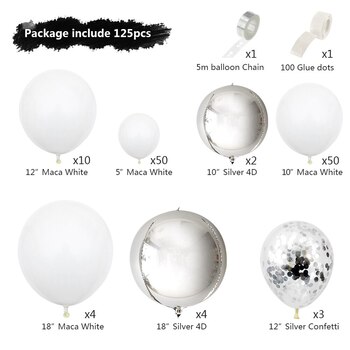 White & Silver Theme 125pcs Balloon Garland Decorating Kit