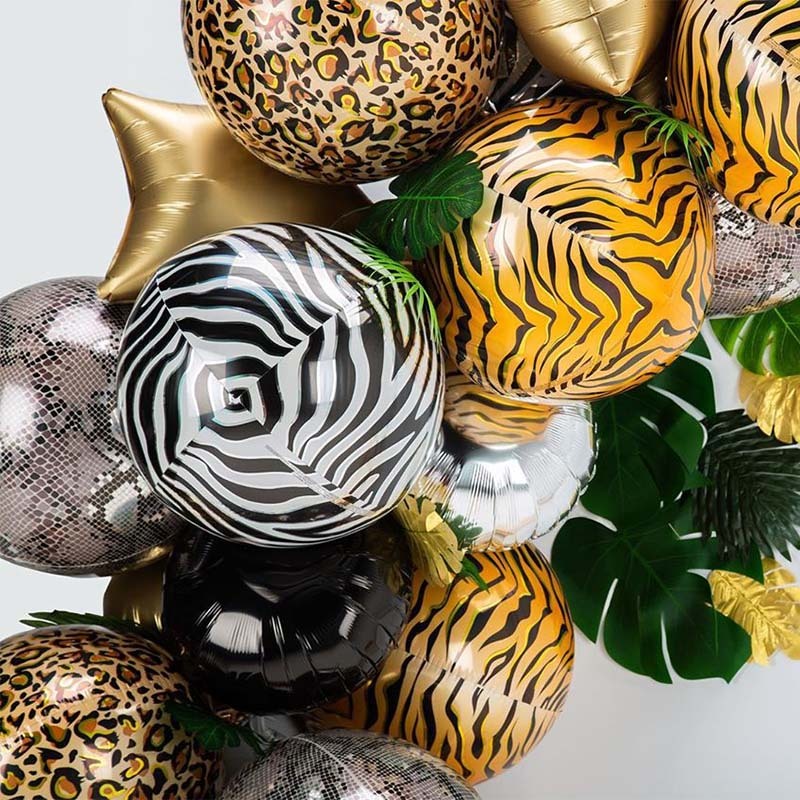Get your wild side on with our range of safari-themed 4d balloons. These balloons form a perfect ball shape when inflated. The zebra balloon is white with black stripes matching perfect with our other zebra themed items