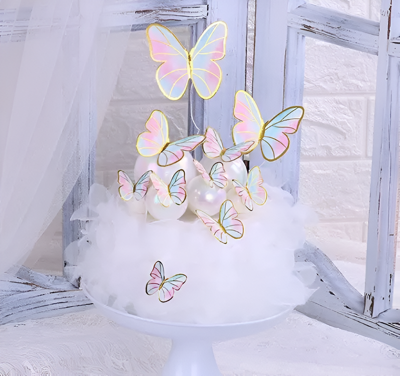 10pcs Set of Blue/Pink Butterfly Decorations / Cake Topper