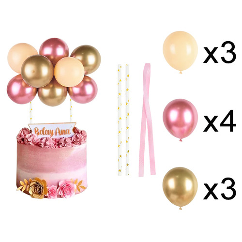 Balloon Cake Topper - Rose Gold and Gold Themed