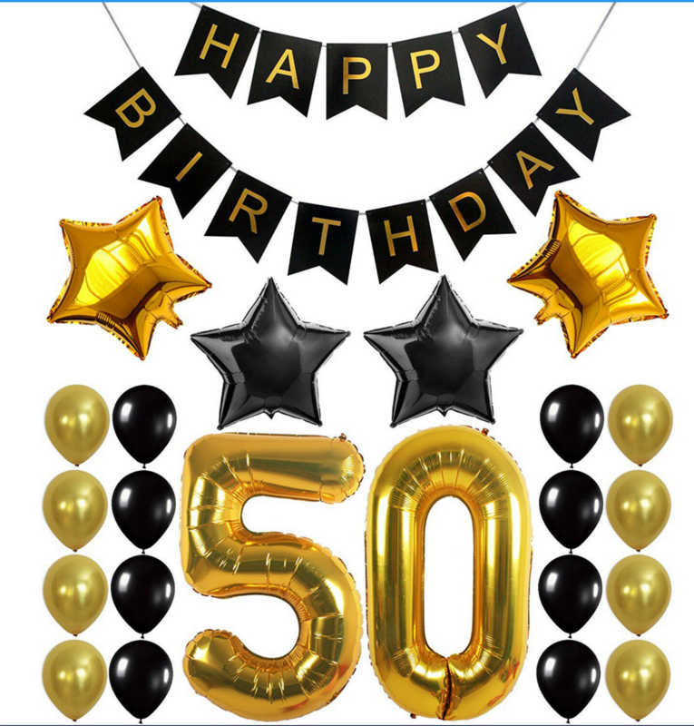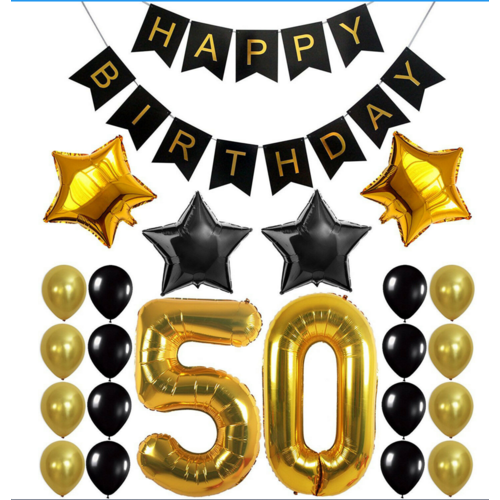 50th Birthday Balloon Decorating Kit - Gold & Black