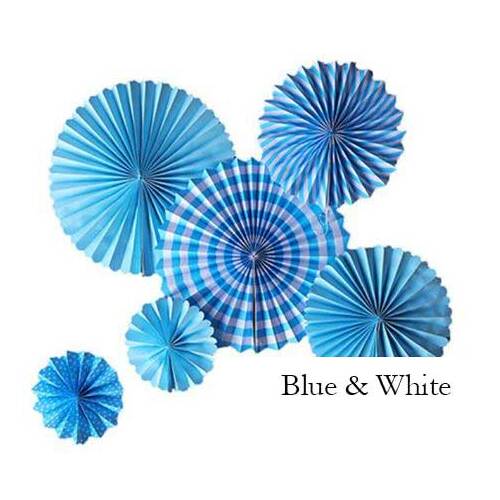 6pc set Fan Lanterns - Blue & White