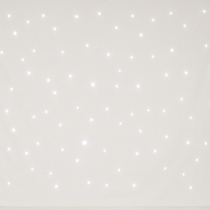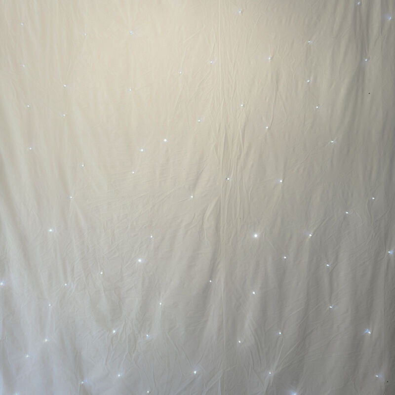Create a stunning light feature with this 3m wide by 3m tall White LED Starlight Curtain. Designed with two fabric layers, this curtain has cool white LEDs stitched into the front layer, offering a sleek, professional look for event backdrops and stage settings.