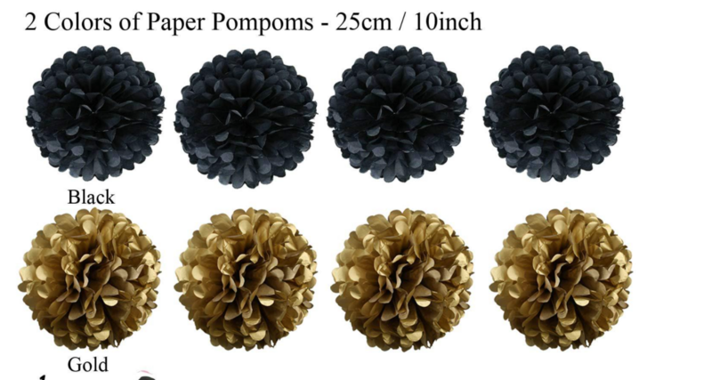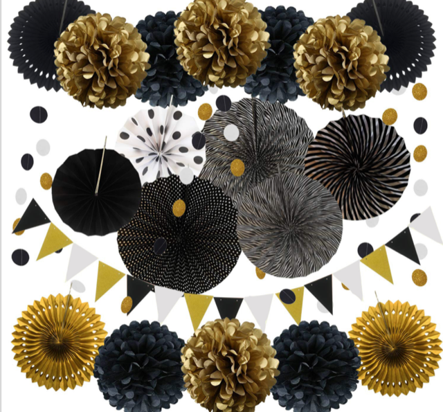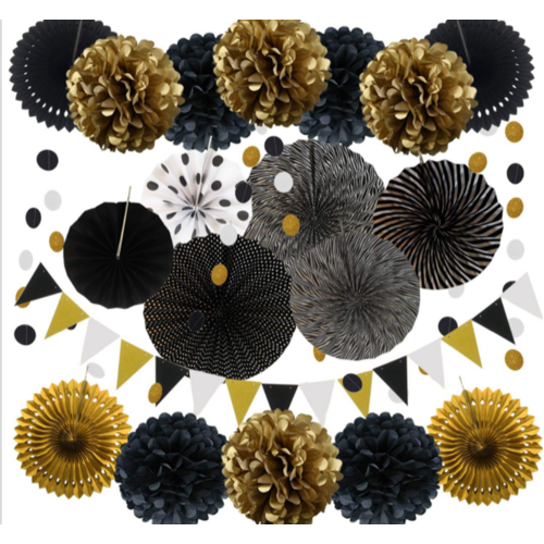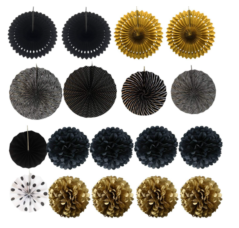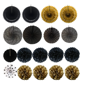 20pcs Black/Gold Paper Party Lantern Decoration Set