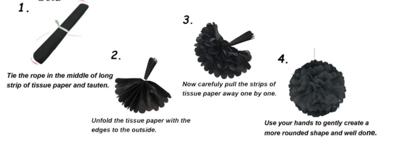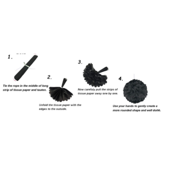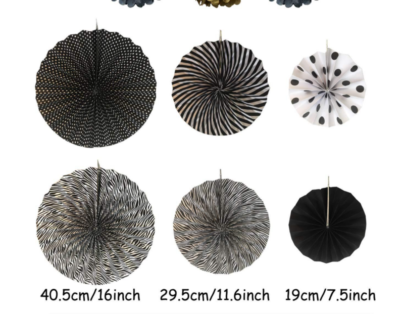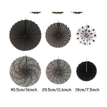 Black Paper Fan 6 pack (20cmx2 30cmX2 40cmx2)
