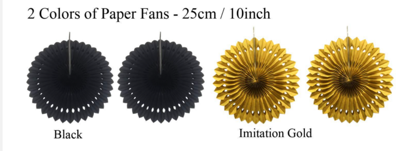 25cm hollow paper fan 4 (Black 2 imitation gold 2)