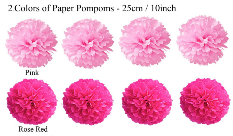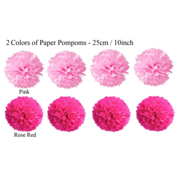 8 x 25cm paper flowers (pink 4 Rose Red 4)