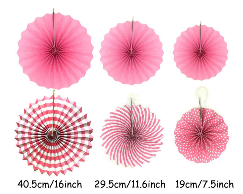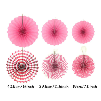 Pink Paper Fan 6 pack (20cmx2 30cmX2 40cmx2)