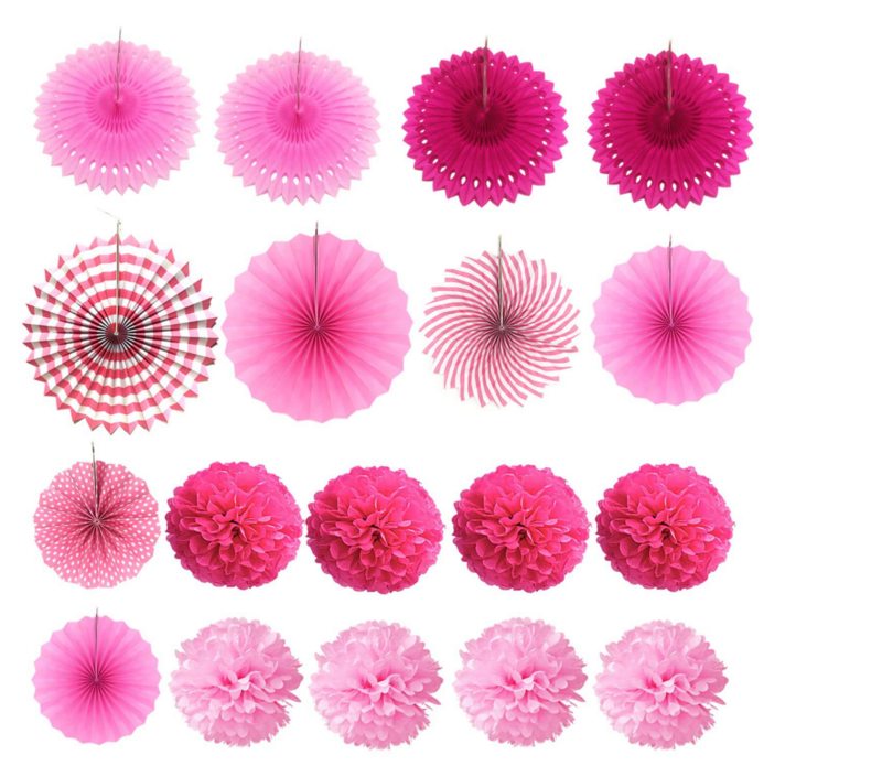 20pcs Pink/Fushia Paper Party Lantern Decoration Set